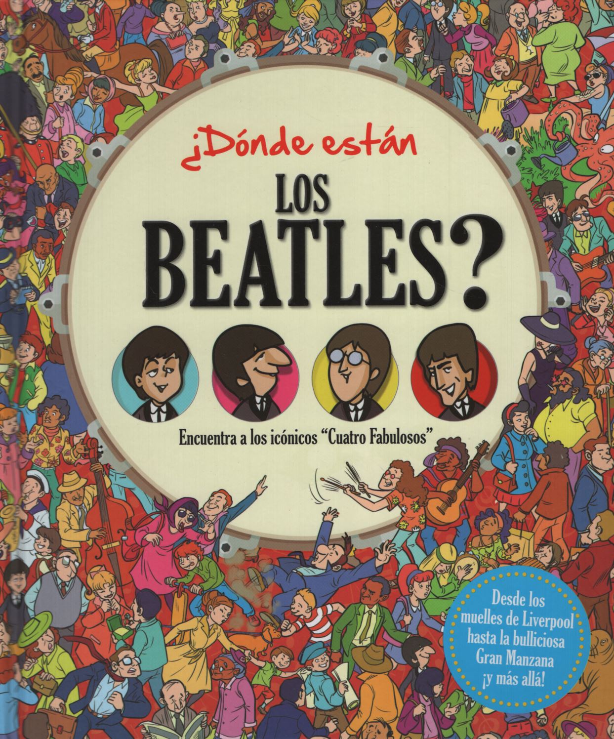 ¿Puedes encontrar a los Cuatro Fabulosos? Este libro extravagante, dinámico y graciosamente ilustrado, presenta escenas inspiradas en la vida de las estrellas de rock, los Beatles, y su rápido ascenso a la fama. También encuentra a Yoko Ono, George Martin, David Bowie y muchas otras celebridades. ¡Entre nosotros podemos resolverlo con una pequeña ayuda de nuestros amigos !