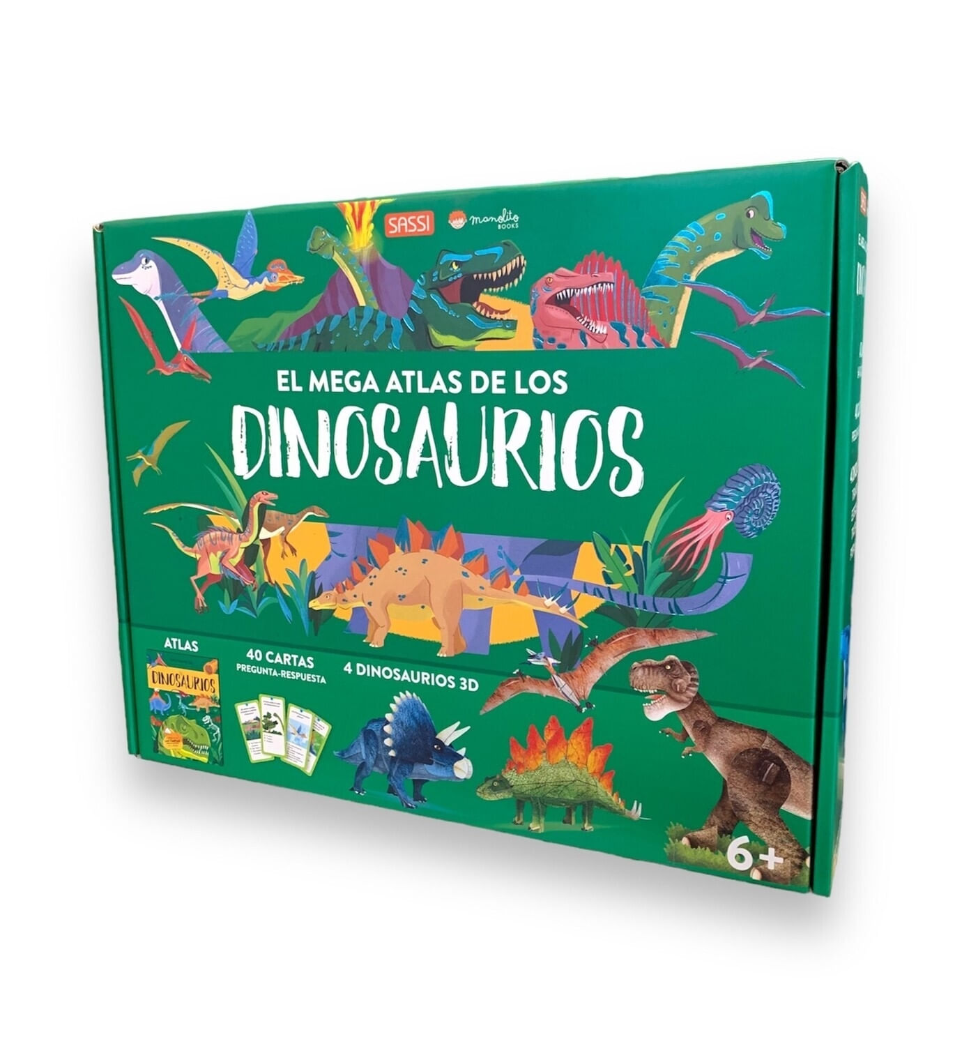 EL MEGA ATLAS DE LOS DINOSAURIOS – 40 CARTAS PREGUNTA-RESPUESTA – 4 DINOSAURIOS 3D